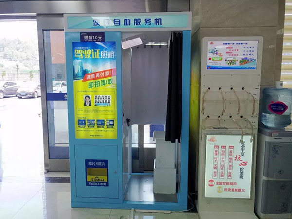 浩田自助證件拍照機可以提供各種證件相片+聯網回執打印,進入設備里坐下后,按照提示操作,自助拍照,成功后約20秒鐘能打印相片和回執。