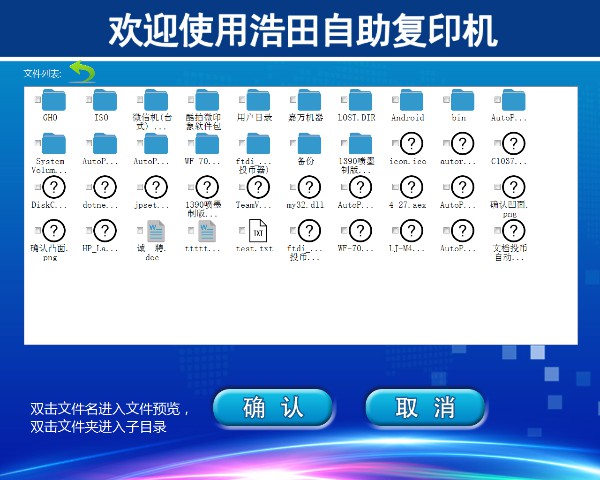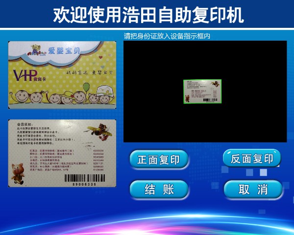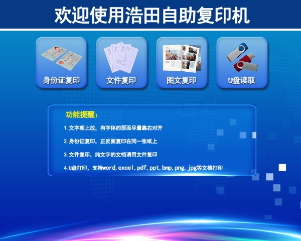 界面上有【身份證復(fù)印】【文件復(fù)印】【圖文復(fù)印】【U盤(pán)讀取】可選